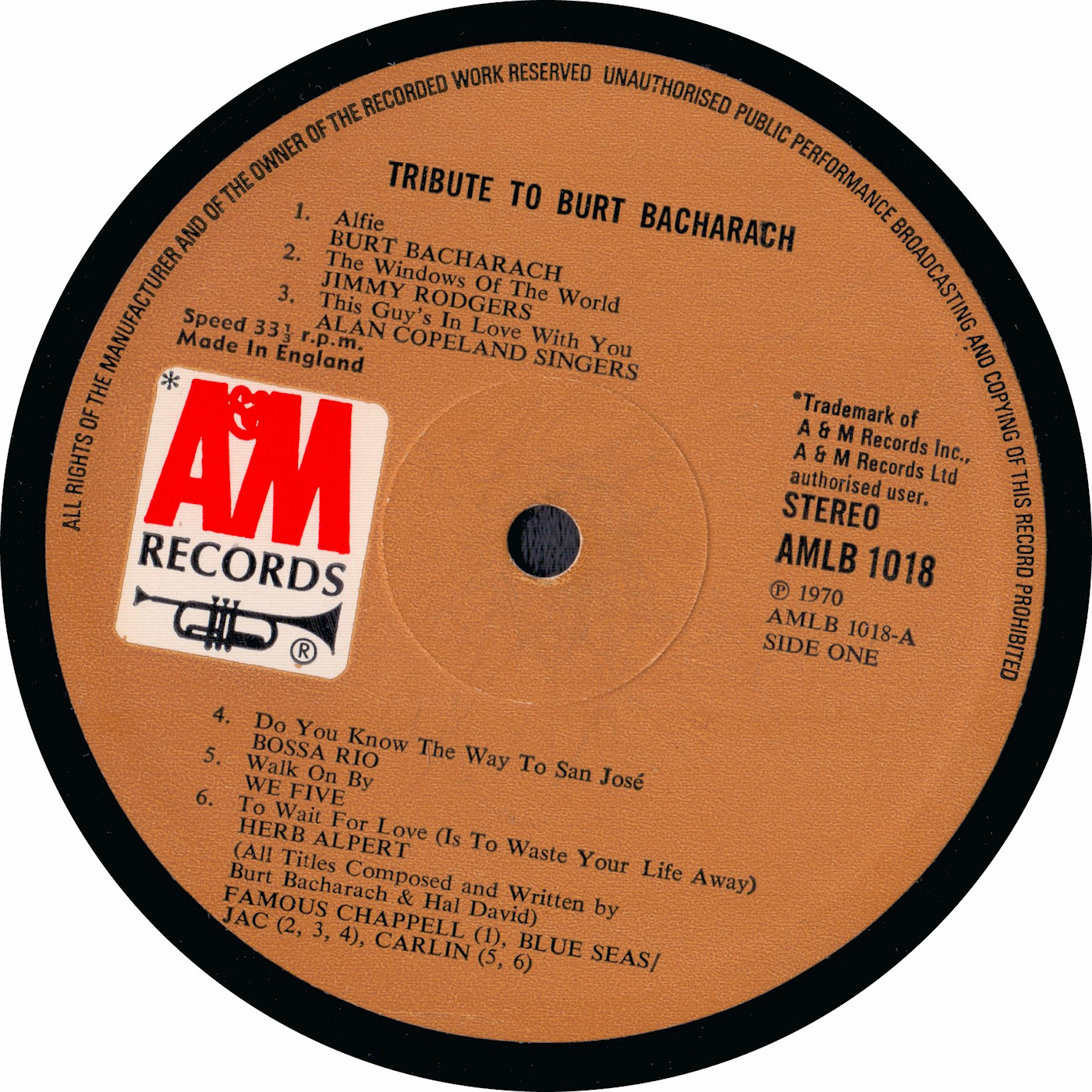 Taken from the LP ‘Tribute To Burt Bacharach’ | (A&M AMLB 1018) 1970